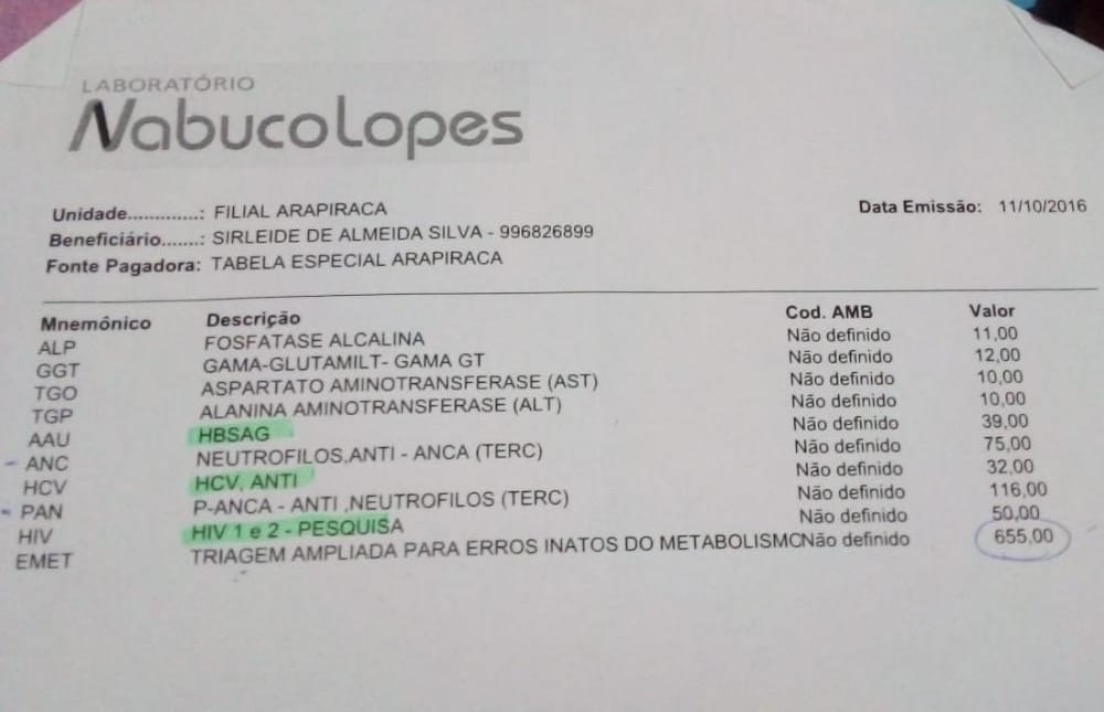 A mesma precisa urgente passar por consultas de retorno, exames para poder comprar a medicação vai fazer três meses que sirleide não faz exames de sangue por falta de dinheiro.
